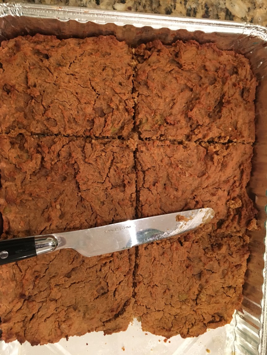 Once mixed, form bars onto greased tin foil on pan (recipe makes 6). Bake for 15 mins. Let cool for at least 5 minutes.