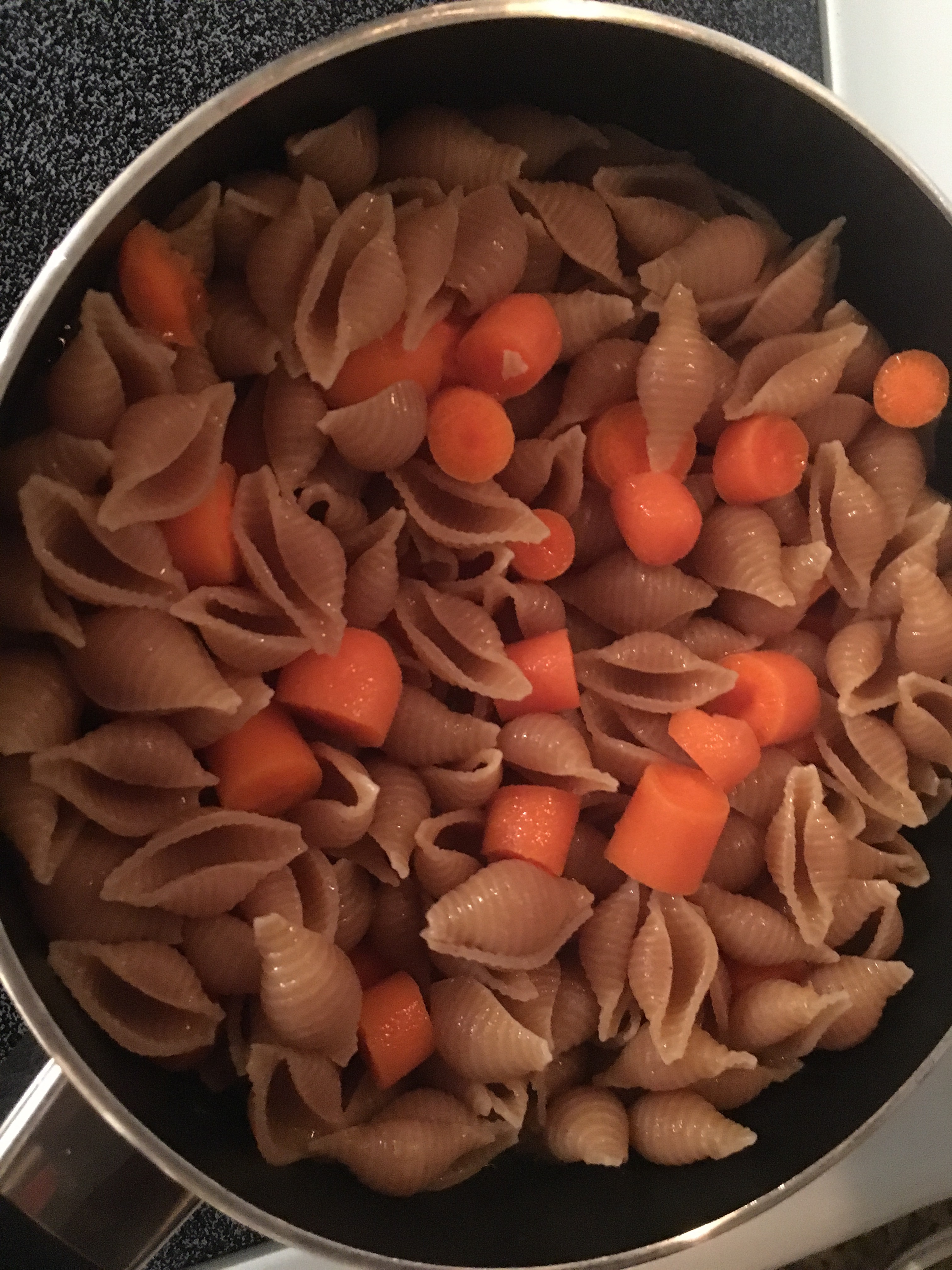 Chili: 1 can tomato sauce, 1 can diced tomatoes, 1 can black beans, 1 can kidney beans (any combo of beans will work)